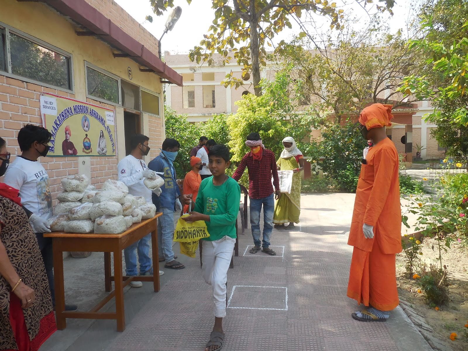 Relief Work— Relief materials, usually blankets, used garments, plastic sheets, and foods are rushed by the Ashrama to the poor and needy in outlying areas in times of flood, fire, severe cold, or other calamity. The Ashrama receives necessary and substantial material help from the Ramakrishna Headquarters in every instance.